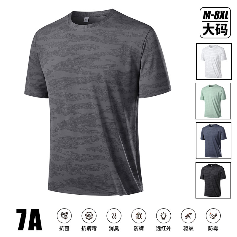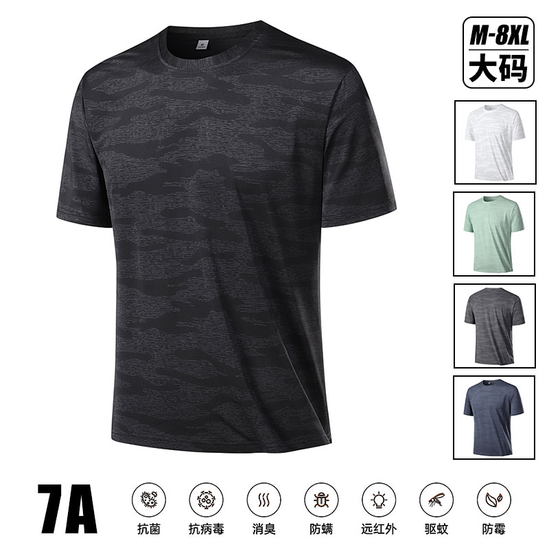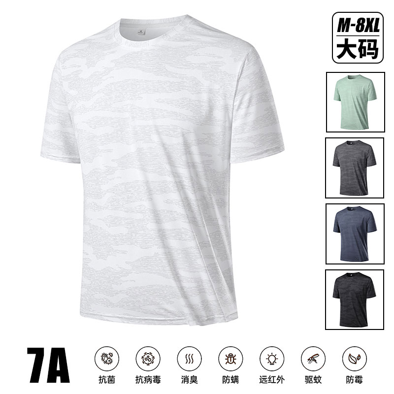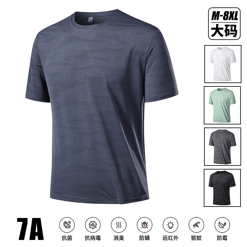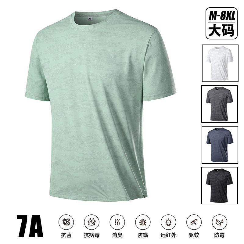 短袖夏天輕薄透氣涼感衣7A抗菌t恤 大尺碼吸濕排汗短袖上衣透氣速乾男生上衣寬鬆休閒男短袖t恤運動短袖男夏季男t恤