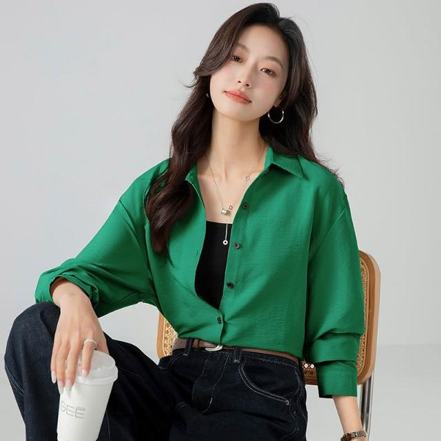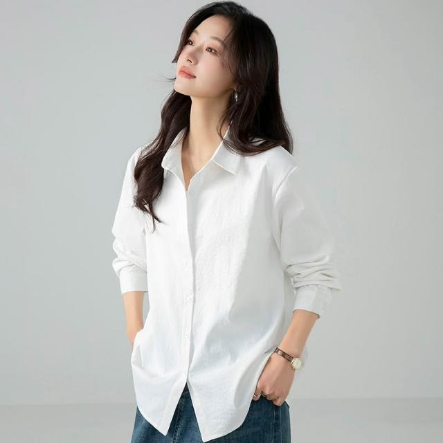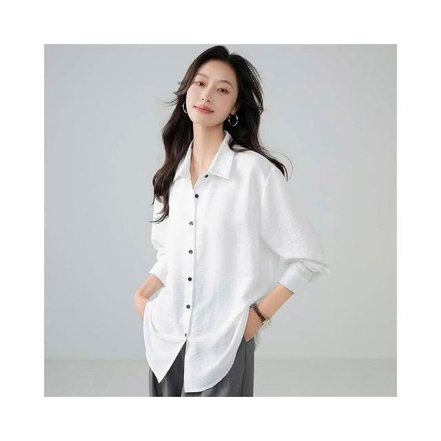 襯衫春夏秋天輕薄透氣襯衫女日常通勤打底女襯衫上班族長版襯衫秋季寬鬆休閒長袖襯衫純色簡約防曬襯衫v領女生白襯衫透氣女襯衫大尺碼吸濕排汗女修身顯瘦打底襯衫女