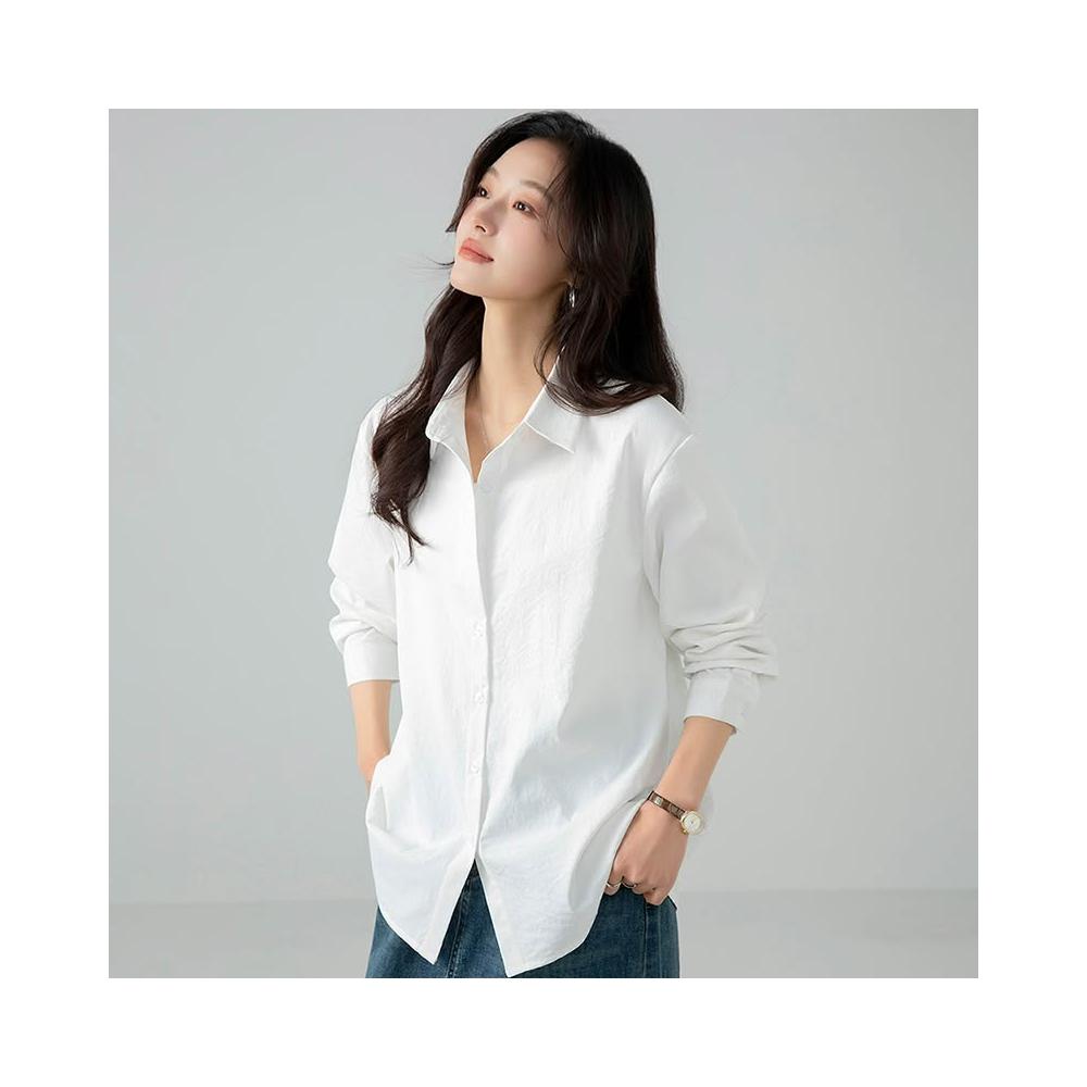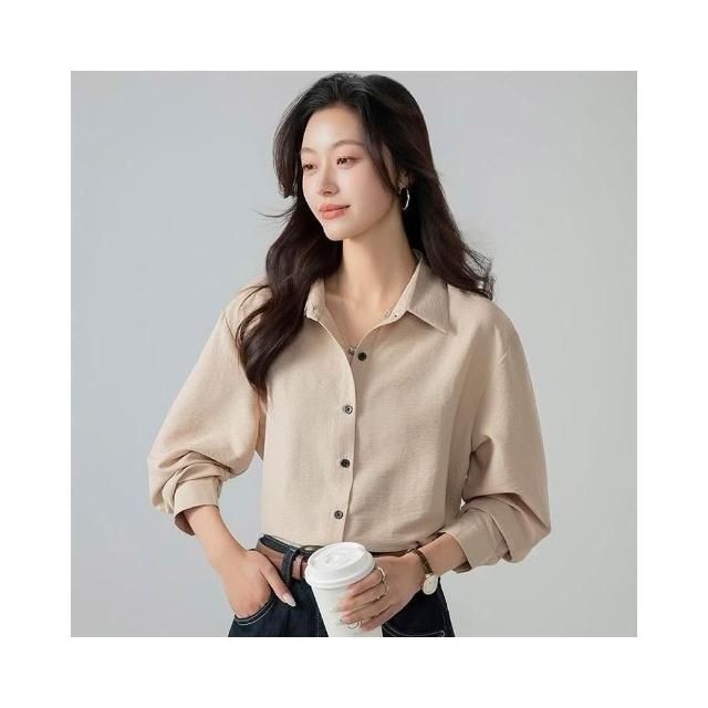 襯衫春夏秋天輕薄透氣襯衫女日常通勤打底女襯衫上班族長版襯衫秋季寬鬆休閒長袖襯衫純色簡約防曬襯衫v領女生白襯衫透氣女襯衫大尺碼吸濕排汗女修身顯瘦打底襯衫女