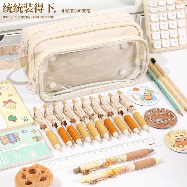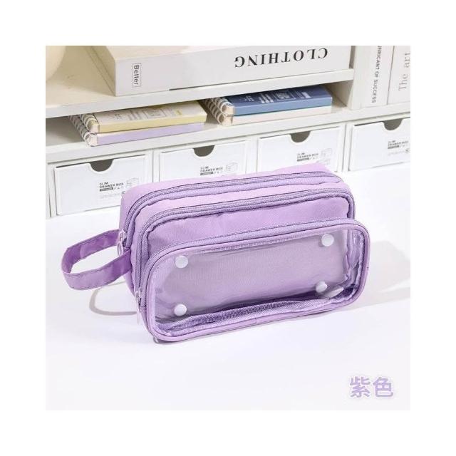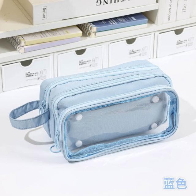 鉛筆盒大容量透明高顏值多層日式痛包可拆卸筆袋置物袋桌面收納袋透明布筆袋國小國中國高學生雙層文具袋化妝袋化妝收納袋