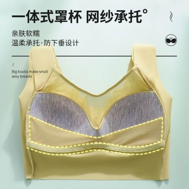 無鋼圈2入組內衣女bra文胸透氣薄款蕾絲性感背心運動美背少女純色無痕棉質蠶絲睡眠減震防下垂聚攏涼感固定不跑杯集中調整型