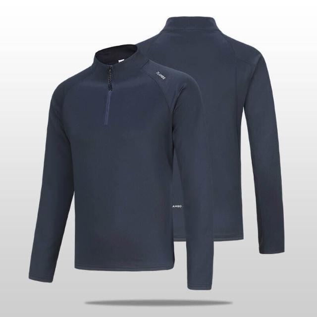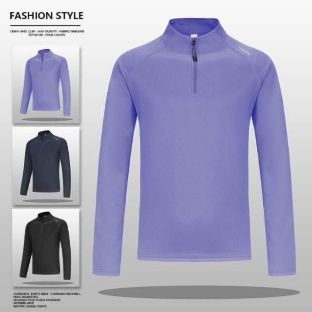 長袖涼感衣速乾衣男上衣圓領半拉鏈立領吸濕排汗衣彈力跑步健身運動T恤釣魚登山純色緊身訓練衣防曬跑步彈力運動上衣男透氣打底衫