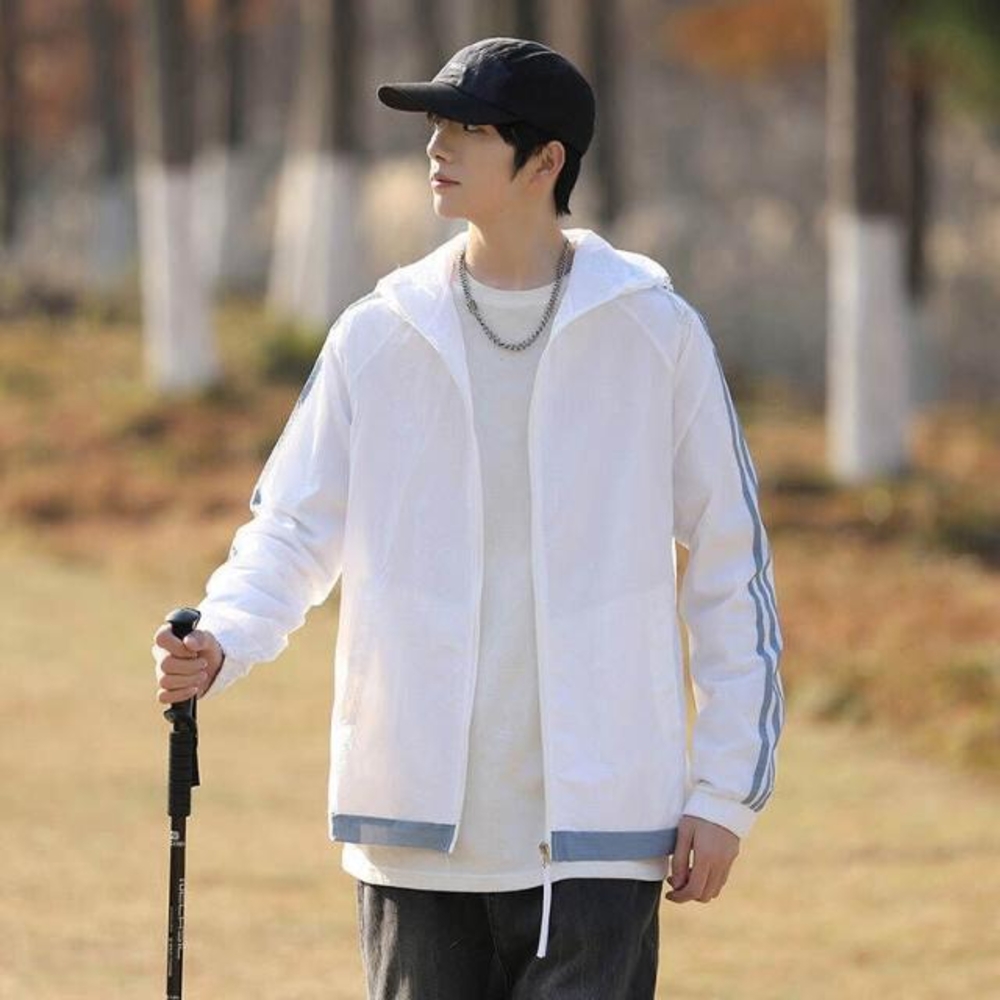 防曬衣軟殼材質冰絲涼感 UPF50 + 抗 uv 防紫外線夏天釣魚遮陽防水透氣防風薄外套男款大尺碼灰色立領飛行外套運動 休閒服男長袖上衣女款戶外通勤穿搭