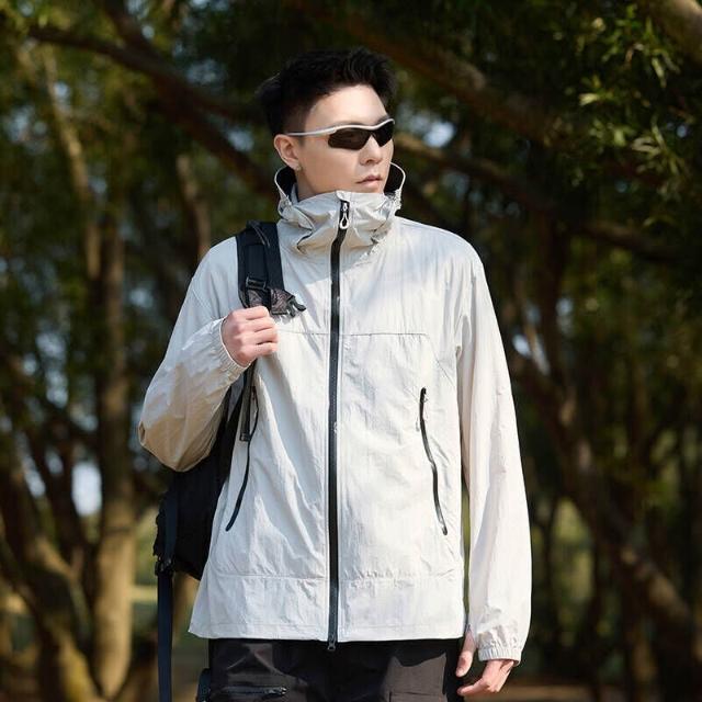 防曬衣防風舒適冰絲涼感 UPF50 + 抗 uv 防紫外線夏天釣魚遮陽防水透氣薄外套男款大尺碼灰色立領軟殼飛行外套運動 休閒服男長袖上衣女款戶外通勤穿搭