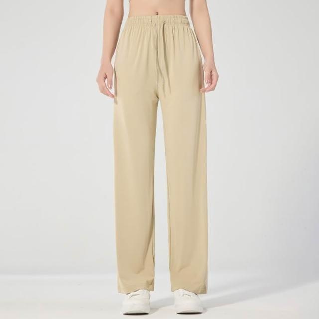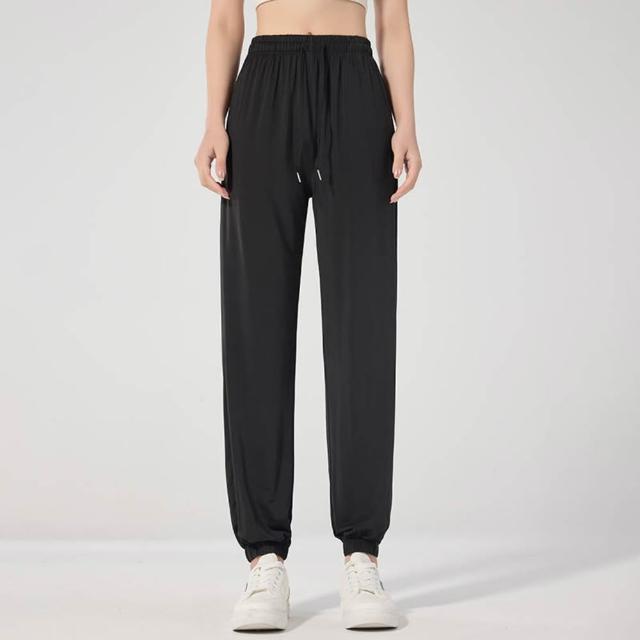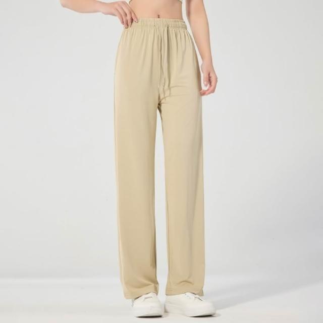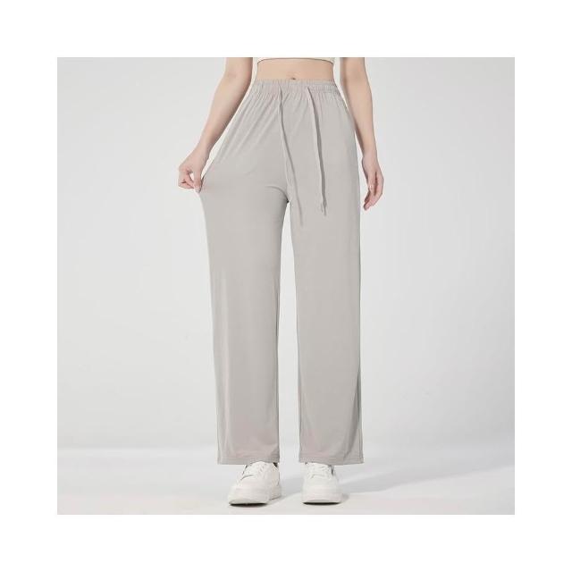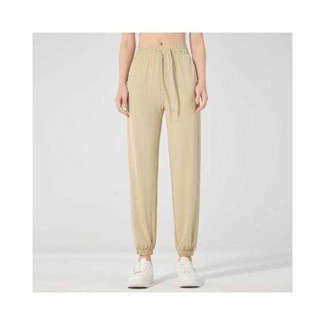 涼感褲女夏季新款女款速幹褲子夏季冰絲透氣寬松運動休閑時尚闊腿褲純色束腳長褲吸濕排汗休閒褲彈力涼感寬褲防曬防紫外線女裝下著