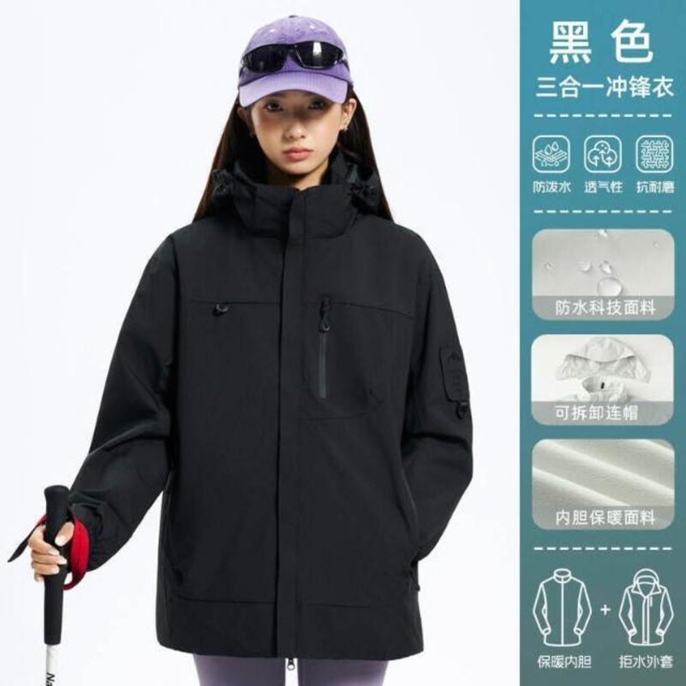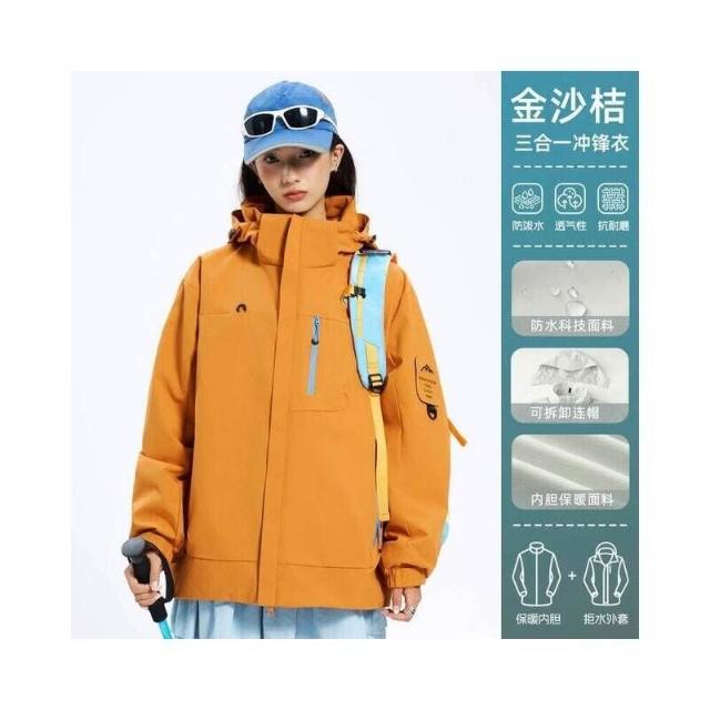 衝鋒衣男女三合一衝鋒外套保暖時尚顯瘦寬鬆休閒秋冬季上衣登山服防風防水防污兩件套韓國棉服修身戶外運動鋪棉夾克飛行