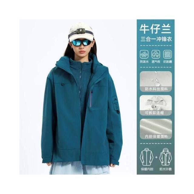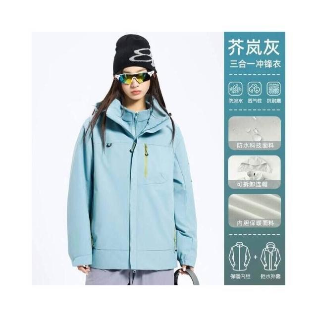 衝鋒衣男女三合一衝鋒外套保暖時尚顯瘦寬鬆休閒秋冬季上衣登山服防風防水防污兩件套韓國棉服修身戶外運動鋪棉夾克飛行