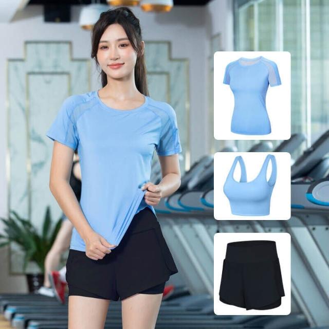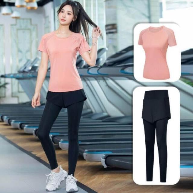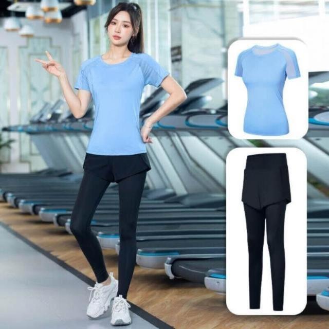 涼感衣女短袖T恤女上衣瑜伽服運動健身服空調服速乾衣冰絲衣瑜伽服套裝女新款輕薄透氣運動套裝潮流時尚跑步速幹衣吸濕排汗輕薄透氣修身短袖