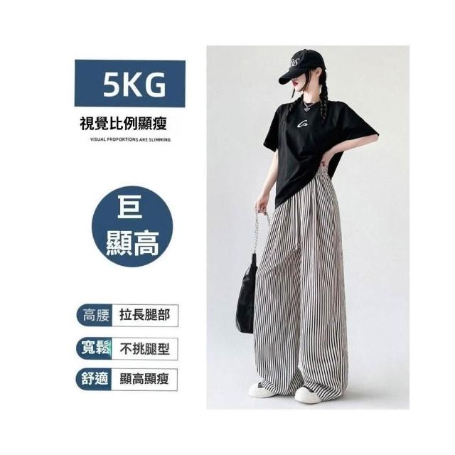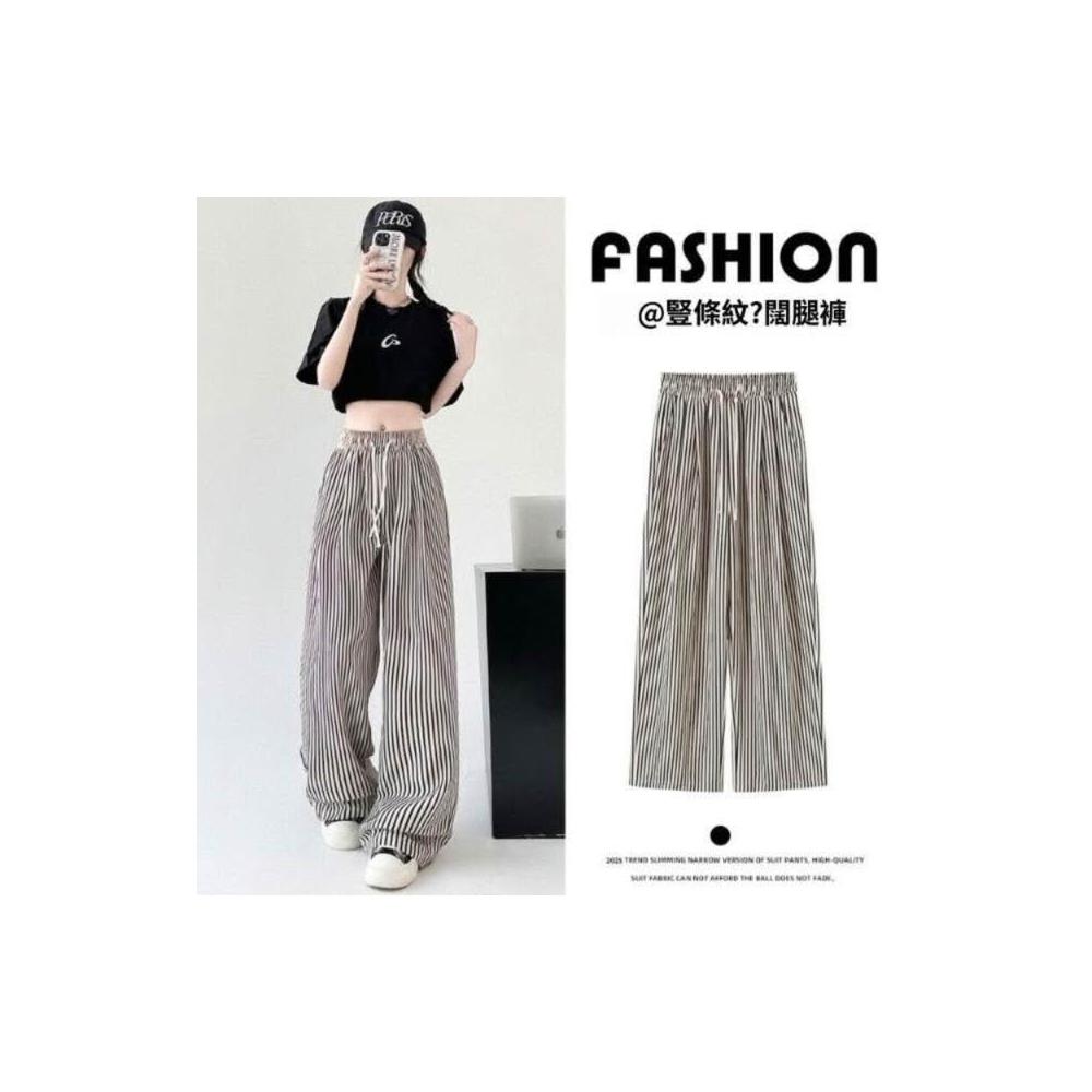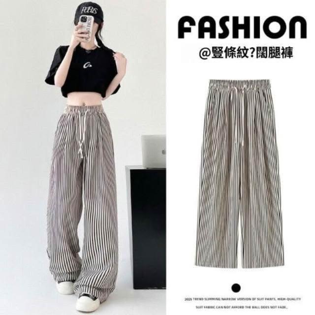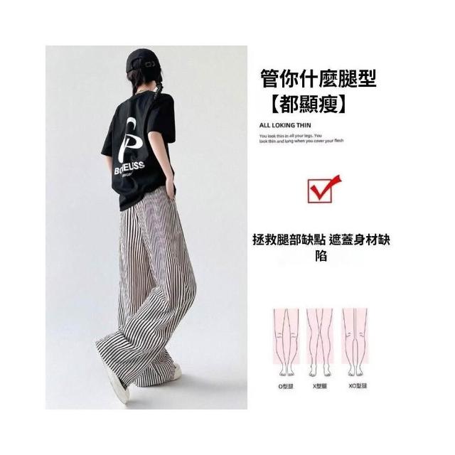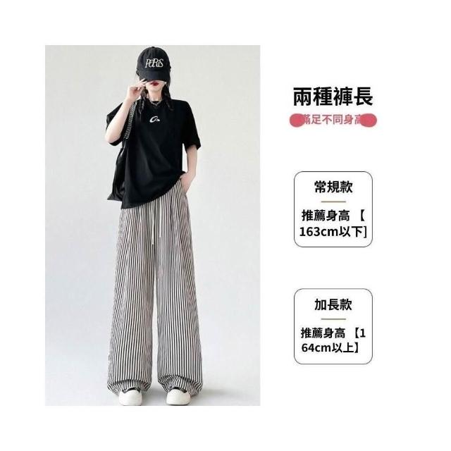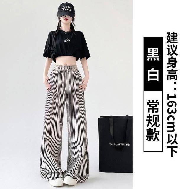 冰絲褲女高腰直筒涼感透氣顯瘦垂墜休閒褲條紋闊腿褲夏季薄款慵懶休閑拖地高腰垂感防曬冰絲涼感機能冰絲褲速乾抗皺顯瘦垂墜遮肉無束縛輕薄