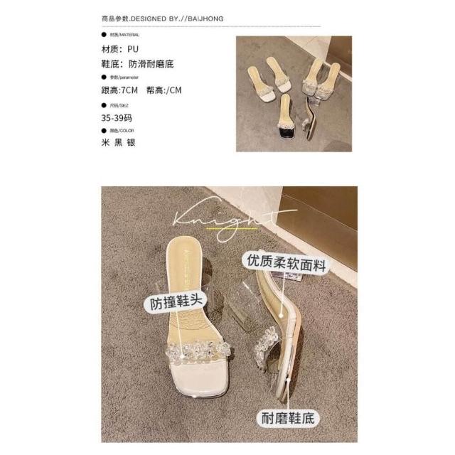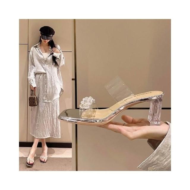 高跟鞋跟鞋女鞋尖頭高跟鞋 水晶透明高跟鞋女新款夏季防水臺涼鞋一字帶粗跟外穿 淑女鞋工作鞋久站不累腳婚鞋伴娘鞋包鞋增高