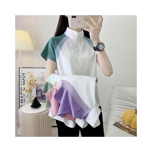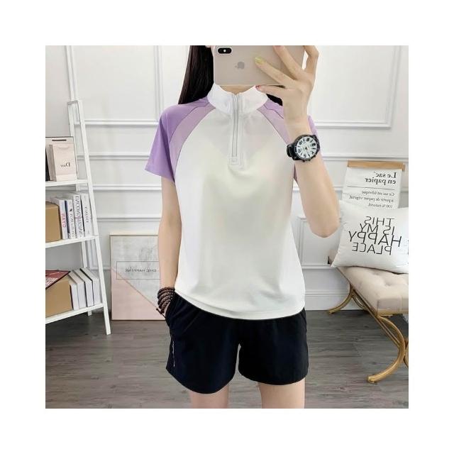 出貨 M-4XL 運動短袖 速乾衣 透氣上衣 涼感上衣 夏天上衣 短袖t恤 女短袖 休閒上衣 立領上衣 女上衣