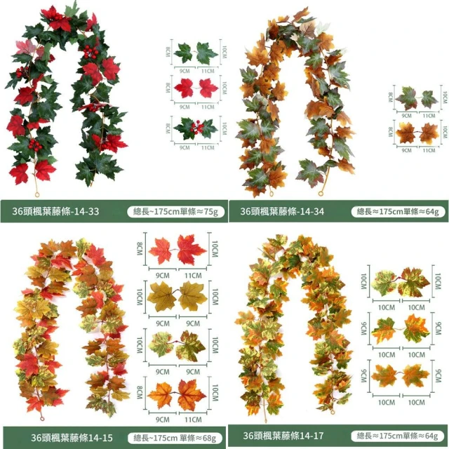 4款仿真楓葉藤蔓(附掛鈎)【快速出貨萬聖節聖誕節裝飾 仿真植物 假樹葉 假花 仿真壁掛楓葉