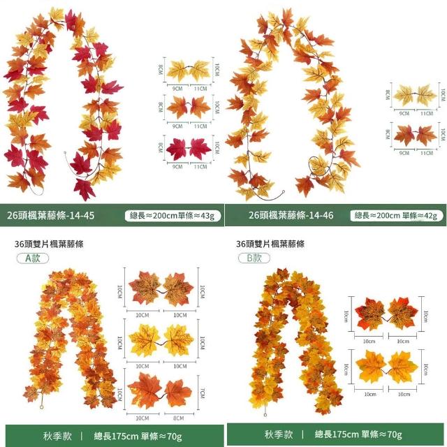 14款仿真楓葉藤蔓(附掛鈎) 萬聖節聖誕節裝飾 仿真植物 假樹葉 假花 仿真壁掛楓葉