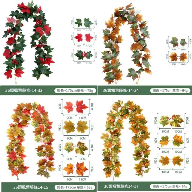 14款仿真楓葉藤蔓(附掛鈎) 萬聖節聖誕節裝飾 仿真植物 假樹葉 假花 仿真壁掛楓葉
