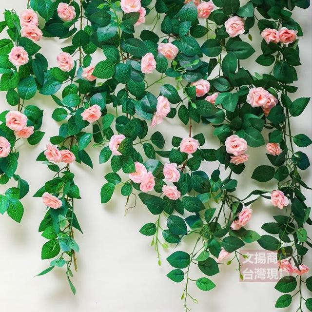 仿真花藤 假花藤蔓 假綠植共7款 牆面吊頂裝飾 假玫瑰 人造花 玫瑰花藤 寶來小
