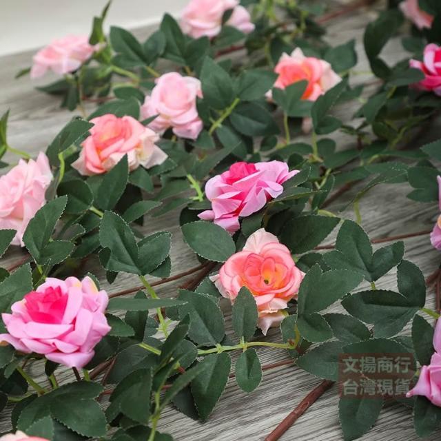 仿真花藤 假花藤蔓 假綠植共7款 牆面吊頂裝飾 假玫瑰 人造花 玫瑰花藤 寶來小