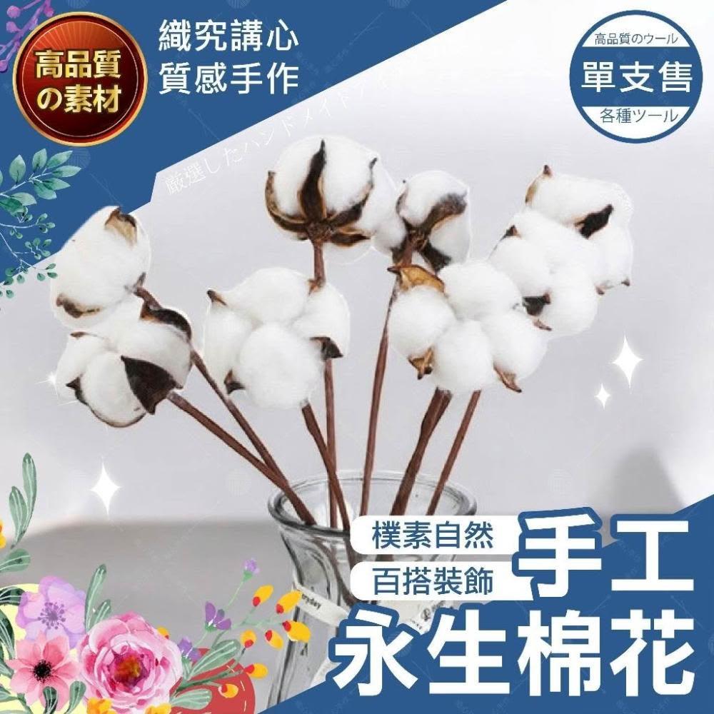 織心手作手工永生棉花 棉花頭 永生花 乾燥花 手作花束 永生 永生花材料 永生花材 棉花桿 單枝棉花頭