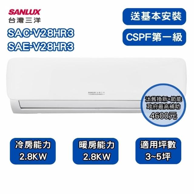 SANLUX 台灣三洋家電速配 R32經典型3-5坪一級變頻冷暖分離式冷氣SAE-V28HR3/SAC-V28HR3
