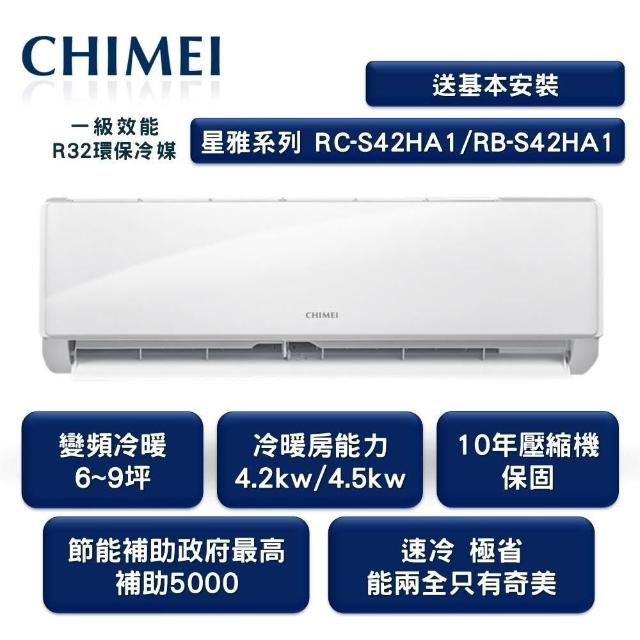 CHIMEI 奇美家電速配 全新星雅變頻冷氣系列6-9坪 強力5D動力速冷 極省自動清洗 (RC-S42HA1/RB-S42HA1)