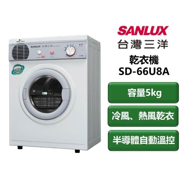 SANLUX 台灣三洋家電速配 乾衣機系列 容量5kg 冷風、熱風乾衣行程 半導體自動溫控 乾衣機(SD-66U8A)