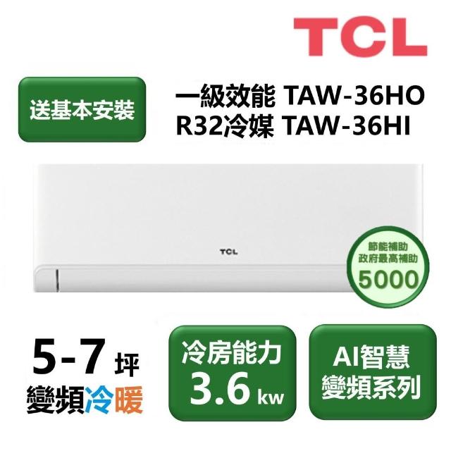 TCL家電速配 AI智慧變頻系列 5-7坪 變頻冷暖分離式冷氣TAW-36HO/TAW-36HI