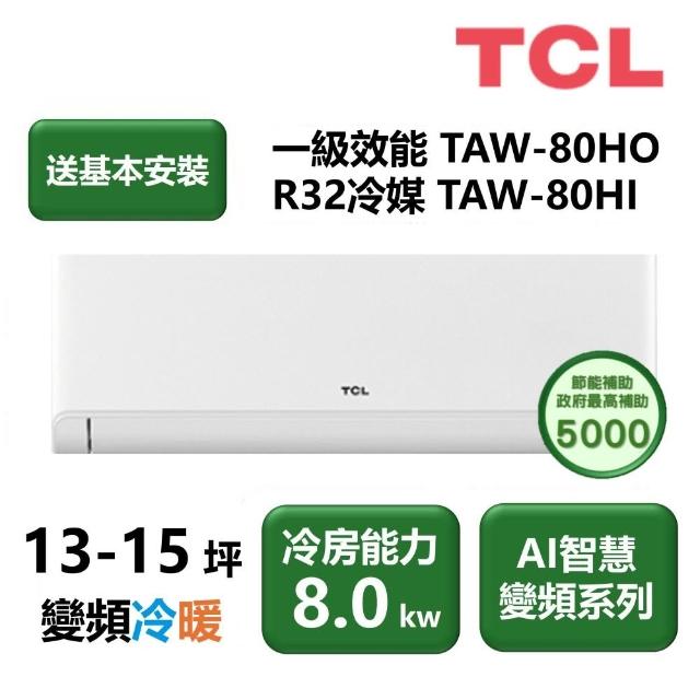 TCL家電速配 AI智慧變頻系列 13-15坪 變頻冷暖分離式冷氣TAW-80HO/TAW-80HI