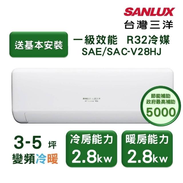 SANLUX 台灣三洋家電速配 速捷淨3-5坪一級直流變頻四方吹健康冷暖分離式冷氣 (SAE/SAC-V28HJ)