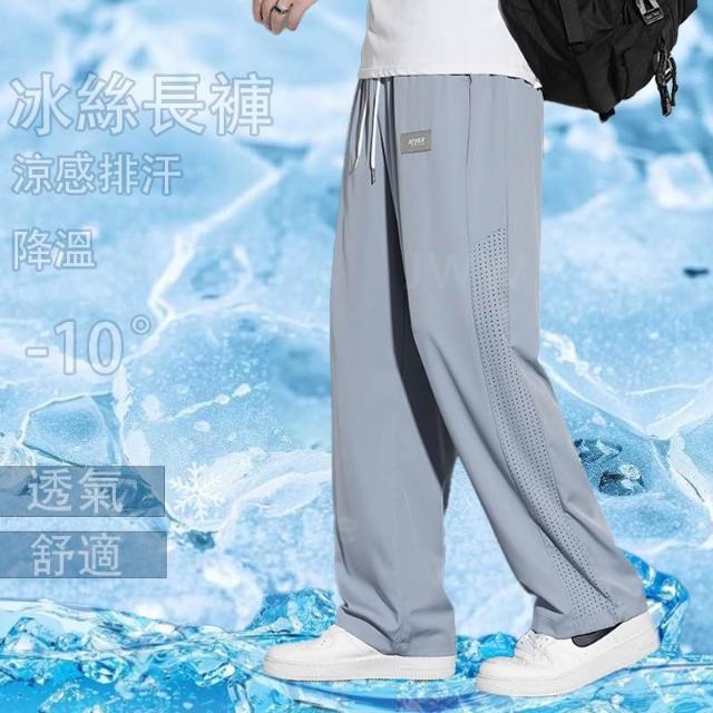 冰絲長褲 輕薄休閒褲 涼感長褲男 冰絲夏褲 涼感直筒褲 垂墜感長褲 垂墜冰絲褲 透氣輕薄長褲 休閒寬鬆透氣鬆緊長褲男