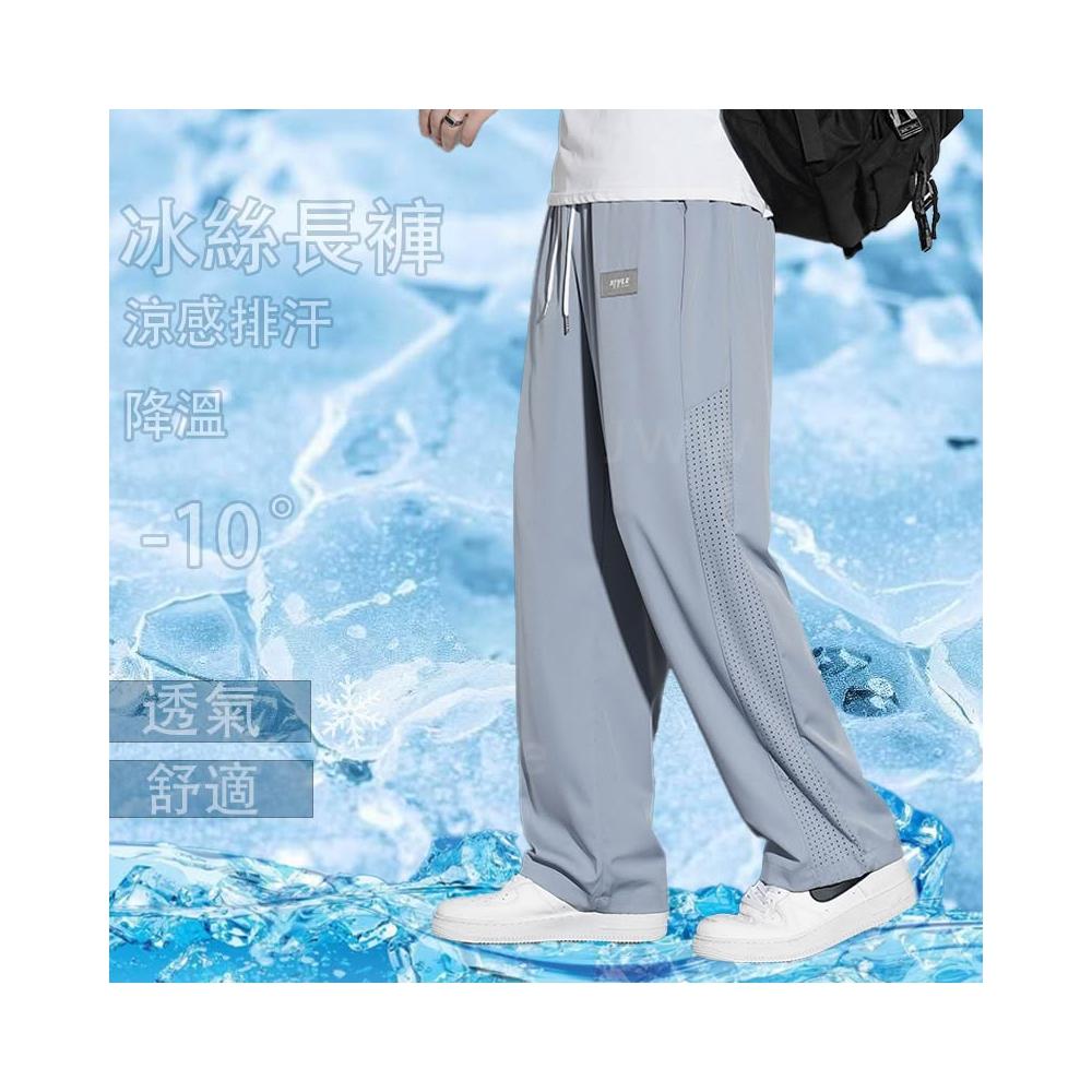 冰絲長褲 輕薄休閒褲 涼感長褲男 冰絲夏褲 涼感直筒褲 垂墜感長褲 垂墜冰絲褲 透氣輕薄長褲 休閒寬鬆透氣鬆緊長褲男