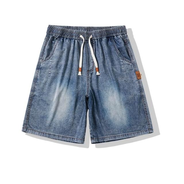 牛仔褲男美式彈力五分牛仔短褲男生夏季時尚潮流涼感超薄透氣直筒天絲牛仔短褲寬鬆五分短褲柔軟舒適鬆緊工作褲戶外通勤休閒下著