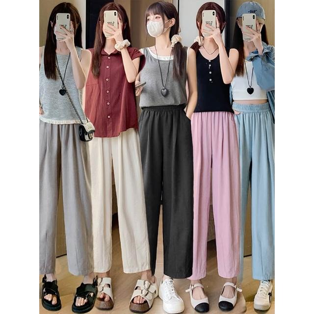 奶芙蘿蔔褲女夏季薄款休閒寬鬆小個子速幹棉麻山本九分冰絲哈倫褲涼感長褲女垂感寬鬆直筒顯瘦顯高空調褲女士瑜伽褲闊腿褲直筒褲