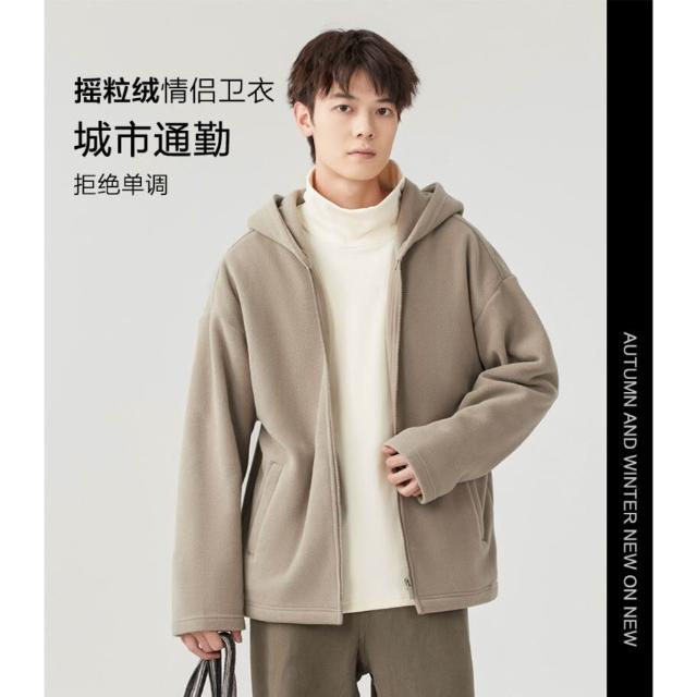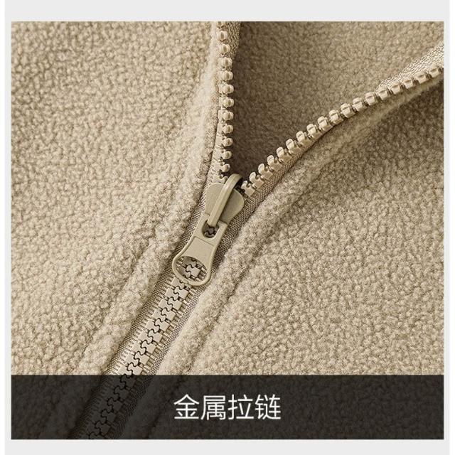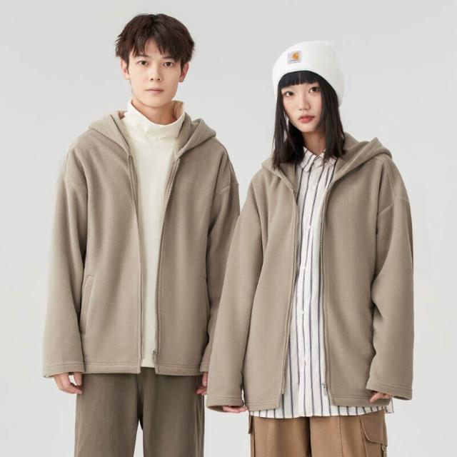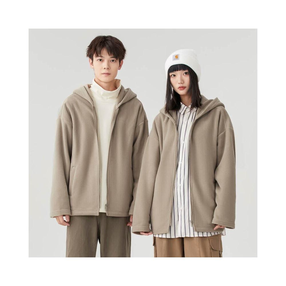 休閒純色連帽搖粒絨情侶衛衣春秋百搭寬鬆青少年學生拉鏈開衫上衣日常通勤簡約保暖工作外套騎車防風外套男女同款抓絨衣加厚上衣