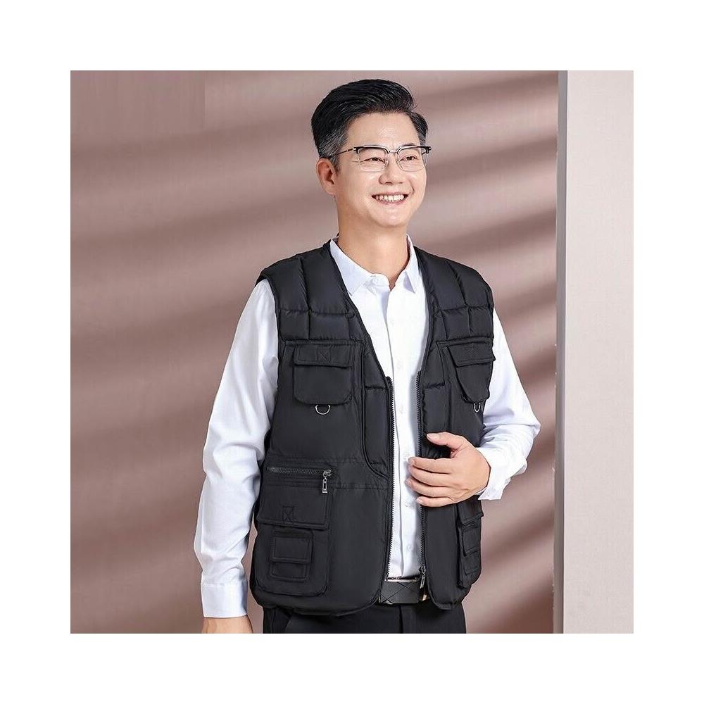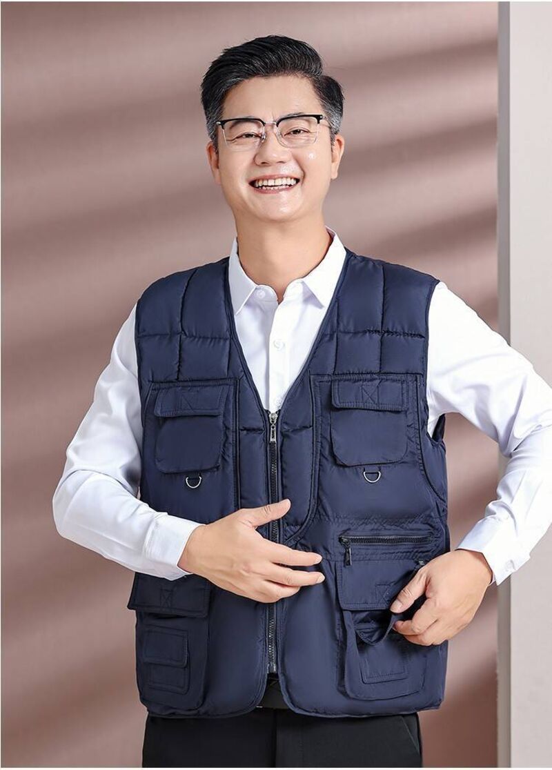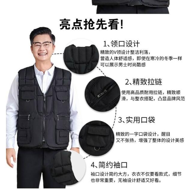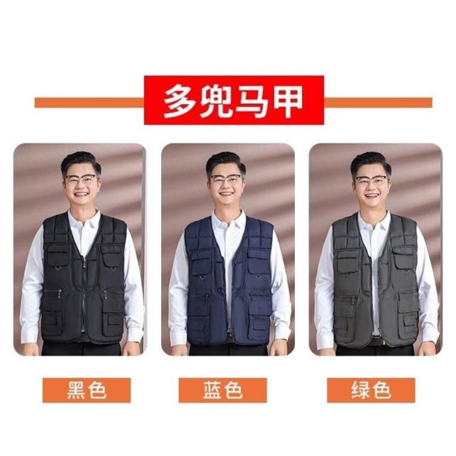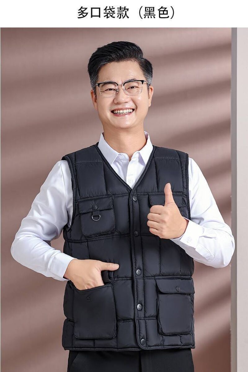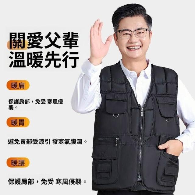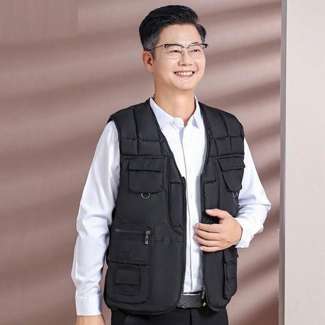 戶外防風防水釣魚徒步多口袋坎肩馬甲秋冬爸爸裝素色保暖馬甲背心中老年背心外套加厚大尺碼純色休閒輕便無袖背心(L-5XL)