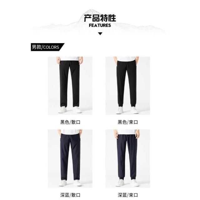 涼感褲男女夏天冰絲涼感寬褲鬆緊束腳防曬工作褲跑步運動長褲大碼冰絲涼感戶外直筒運動褲輕薄透氣舒適褲休閒騎車登山速乾排汗長褲