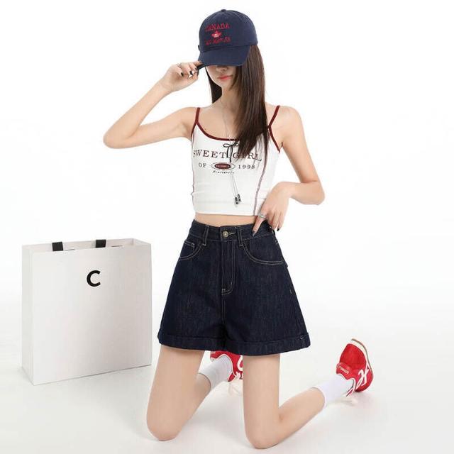 短裙女休閒牛仔褲刺繡牛仔短裙女夏季年高腰顯瘦a字小個子外穿熱褲百搭牛仔短褲女韓版高腰顯瘦修身彈力通勤日常遮肉小個子短褲
