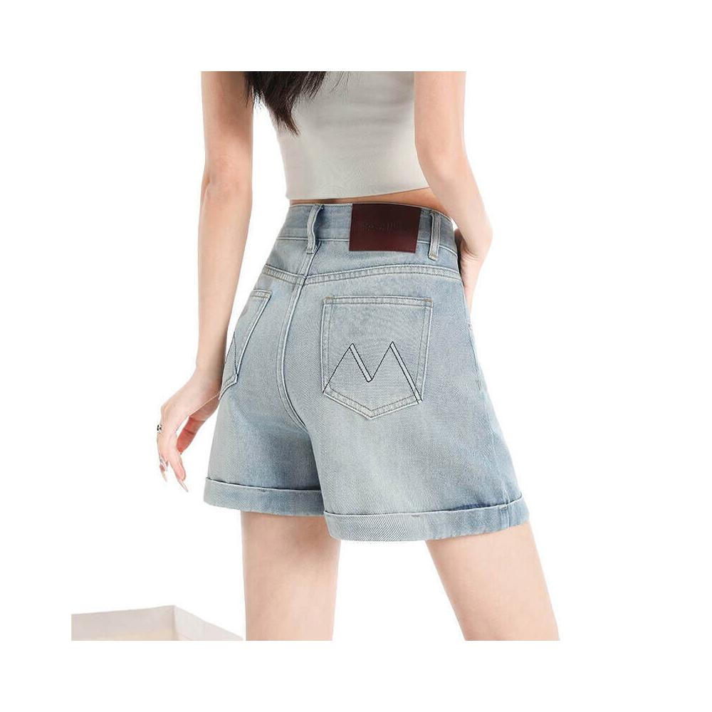牛仔短裙女夏季刺繡牛仔短裙女夏季防走光百搭a字帶內襯顯瘦包臀裙辣妹短裙半身裙撞色女韓版高腰顯瘦A字百搭通勤遮肉小個子短裙