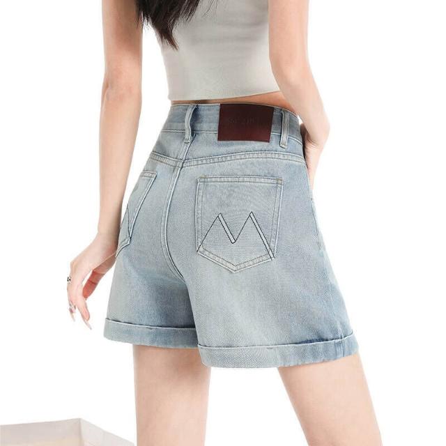 牛仔短裙女夏季刺繡牛仔短裙女夏季防走光百搭a字帶內襯顯瘦包臀裙辣妹短裙半身裙撞色女韓版高腰顯瘦A字百搭通勤遮肉小個子短裙