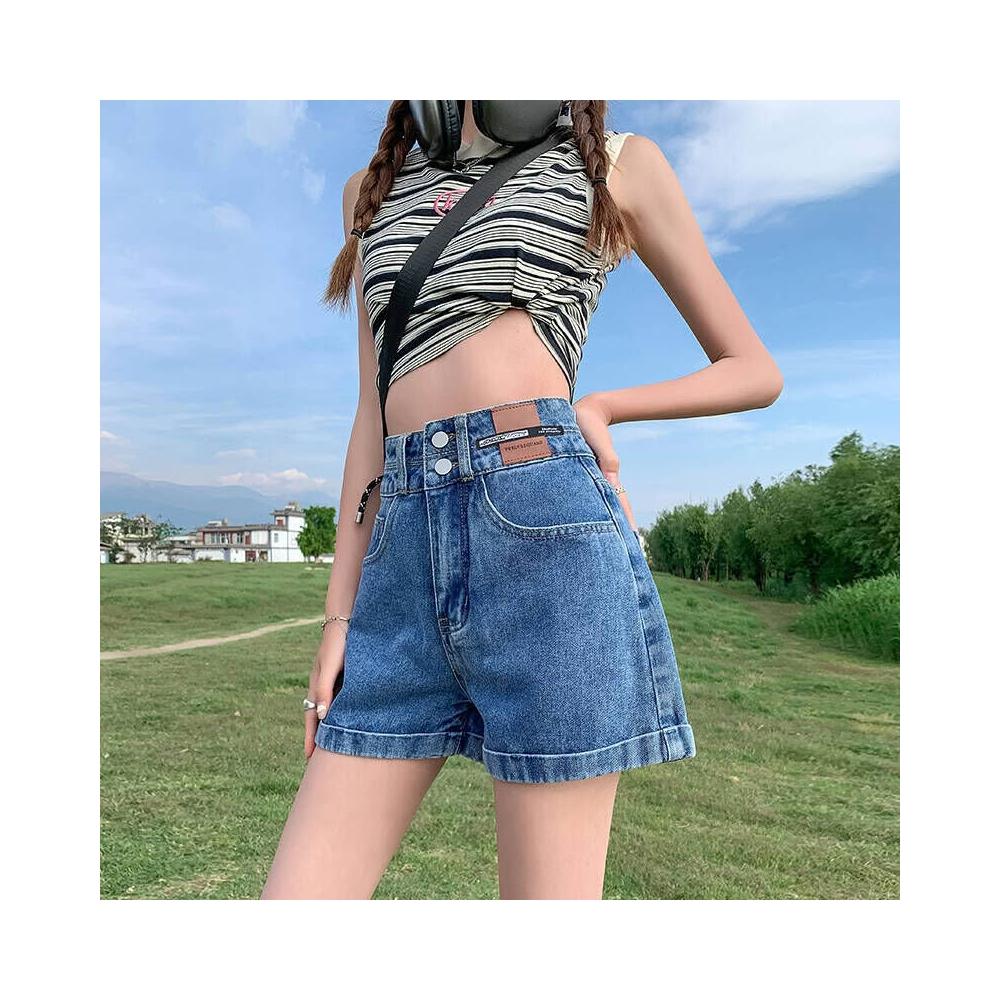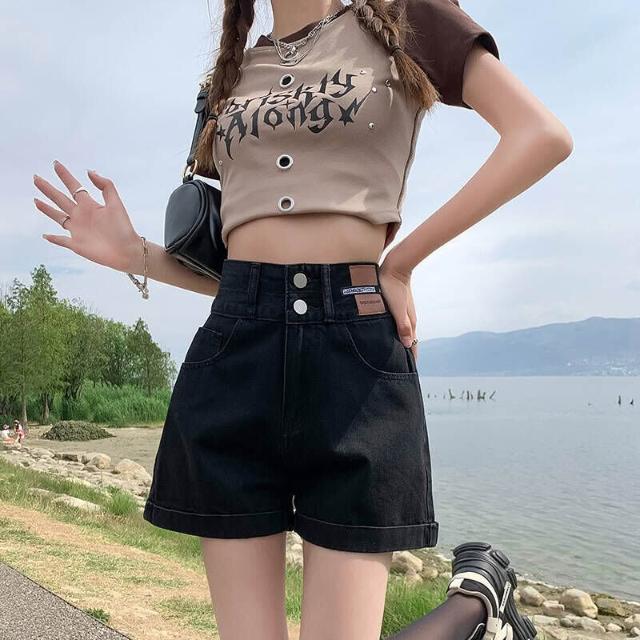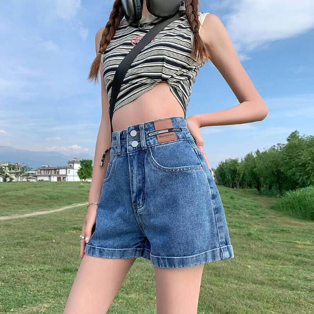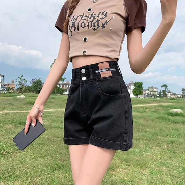 短褲休閒褲牛仔褲刺繡牛仔短褲女夏季年高腰顯瘦小個子外穿熱褲百搭牛仔短褲女韓版高腰顯瘦修身彈力通勤日常遮肉小個子短褲