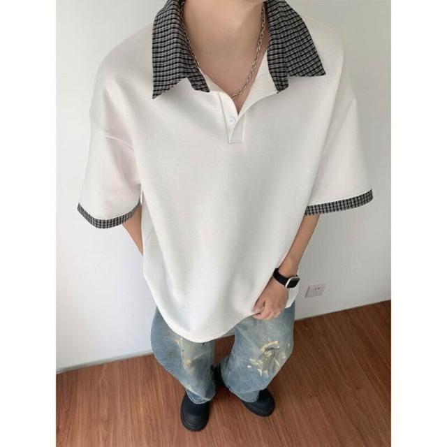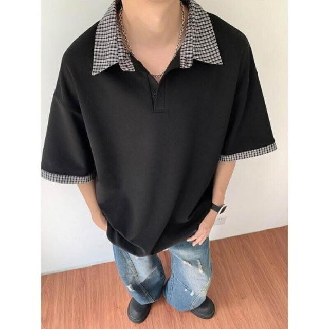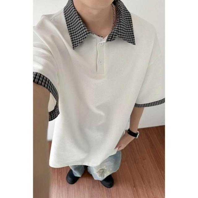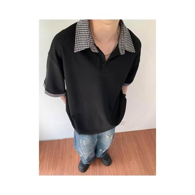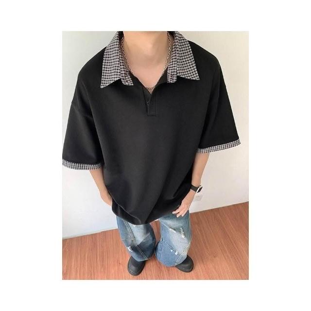 短袖上衣男大尺碼涼感衣假兩件上衣休閒短版立領polo衫吸濕排汗衣夏天寬鬆t恤男裝男生透氣速乾衣服運動短袖T恤白色黑色上衣