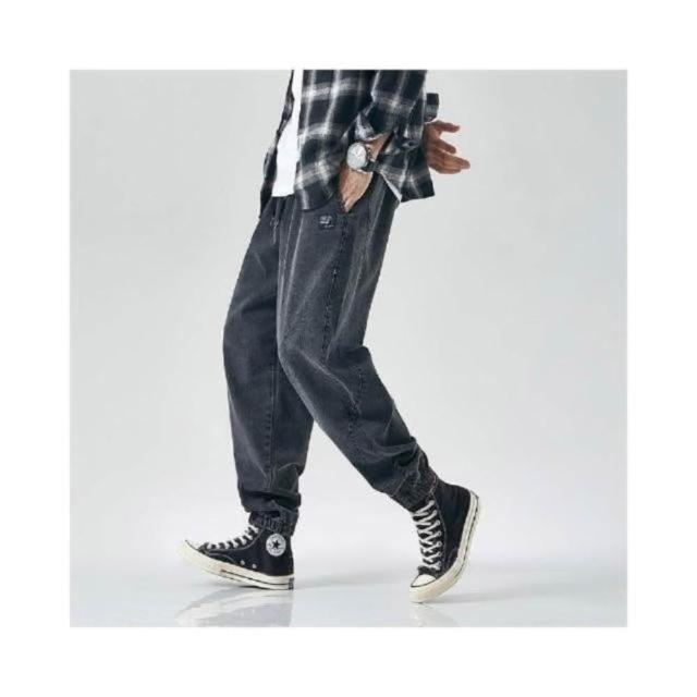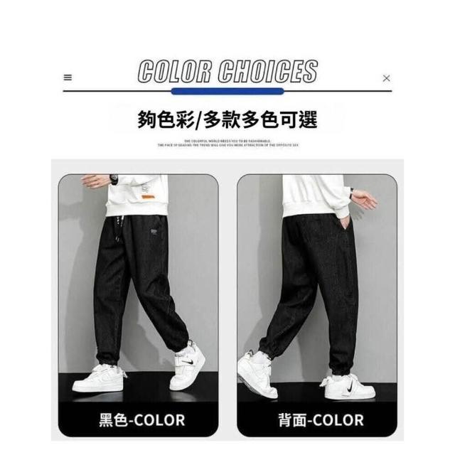 九分牛仔褲男大尺碼彈性寬褲男生春秋季薄款透氣長褲鬆緊束口哈倫休閒褲男款寬鬆耐磨工作褲美式高街垂感顯瘦牛仔長褲鬼洗牛仔褲