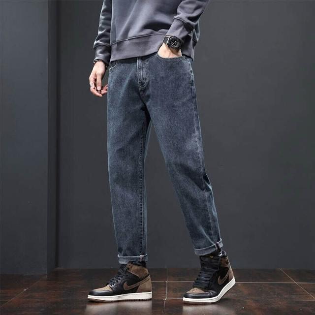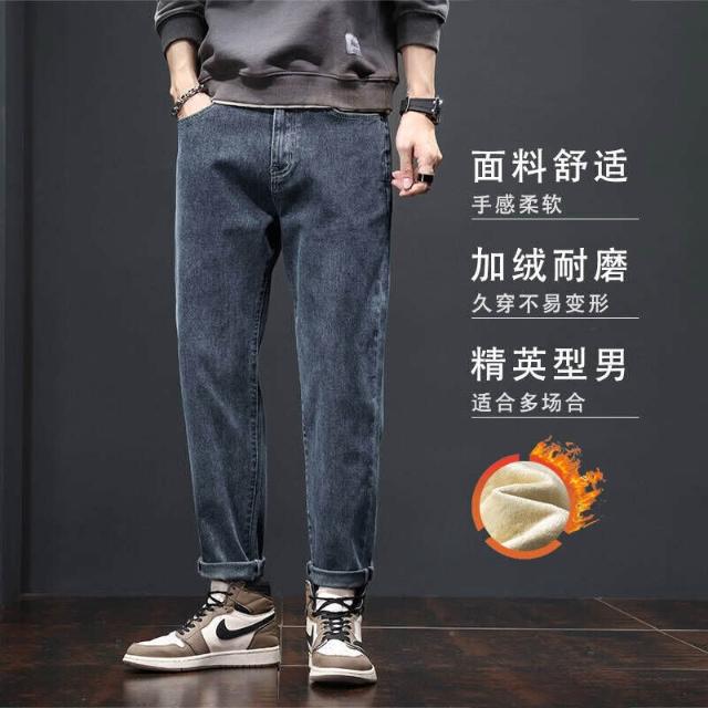 牛仔褲加絨男士秋冬季寬松錐形直筒褲新款春秋彈力休閑褲男士高檔潮牌保暖長褲男加厚牛仔褲發熱長褲輕商務簡約時尚百搭彈力刷毛褲
