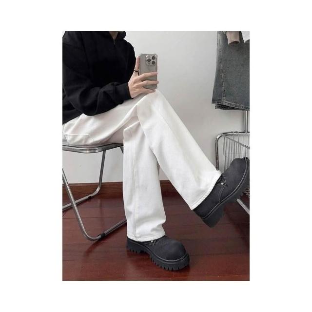 牛仔褲男女同款純色白色牛仔褲直筒修身顯瘦顯腿長牛仔褲女高腰牛仔長褲彎刀褲女顯瘦微喇牛仔褲直筒牛仔褲寬鬆牛仔寬褲
