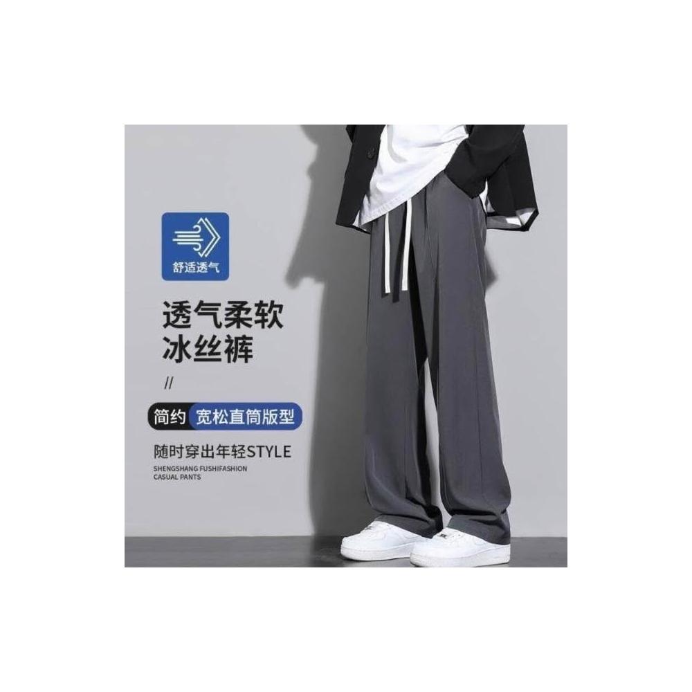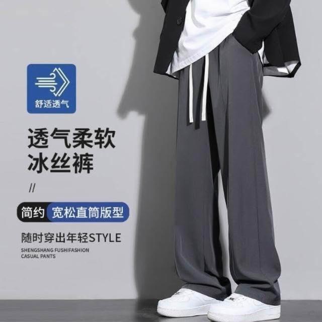 西褲男冰絲涼感戶外直筒運動褲速乾排汗舒適褲冰絲涼感寬褲鬆緊束腳防曬工作褲夏天運動慢跑長褲休閒騎車登山輕薄透氣長褲大尺碼