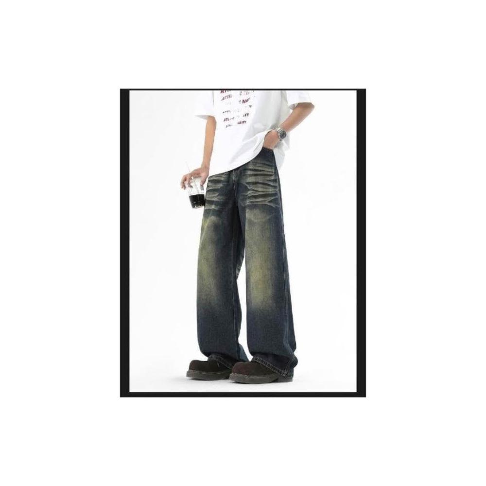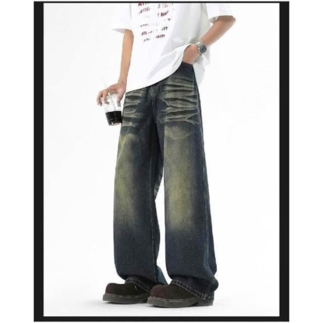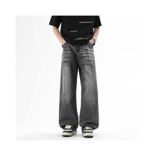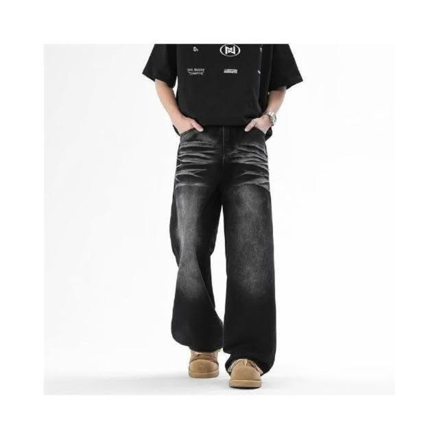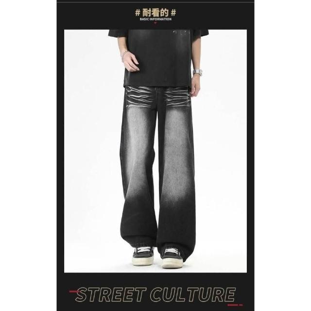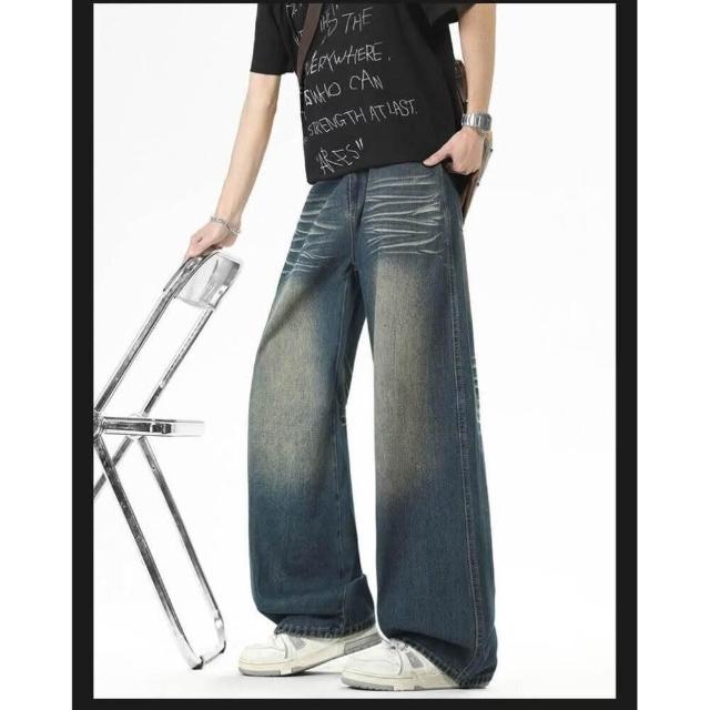 彎刀褲牛仔褲 直筒牛仔褲男款大尺碼彎刀鬼洗牛仔長褲男生寬鬆休閒褲防風保暖褲彈力寬褲子工作運動長褲鬆緊帶彈性長褲美式復古高腰闊腿牛仔褲