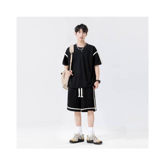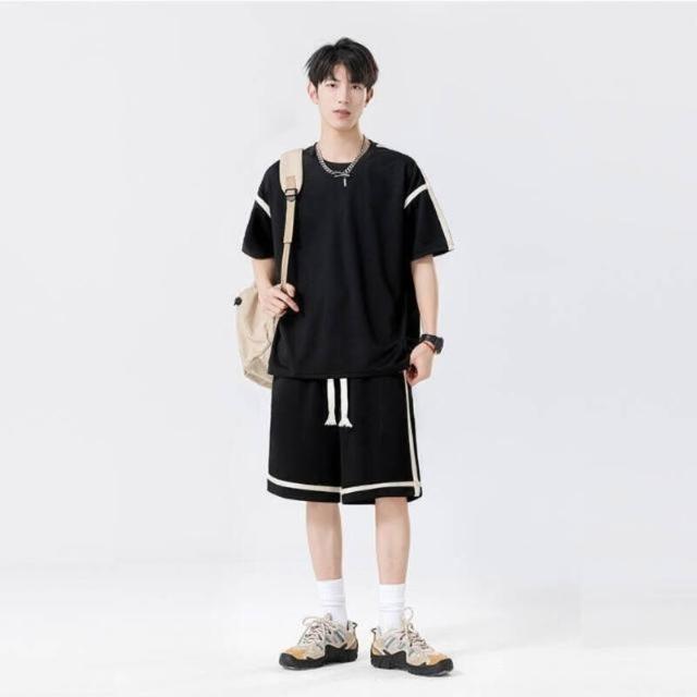 運動短褲男籃球褲球褲速乾短褲涼感褲冰絲休閑套裝男夏季籃球運動服青少年短袖短褲一套帥氣搭配兩件套戶外休閒跑步健身短褲透氣吸汗五分褲寬鬆空調冰絲褲