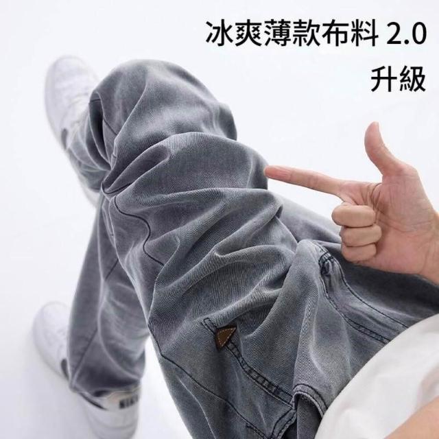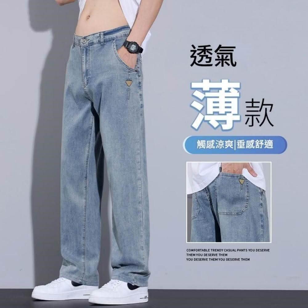 牛仔褲男夏季薄款透氣休閒褲寬鬆彈性大碼直筒褲夏天韓版灰色男生時尚百搭中腰長褲男士涼感寬褲天絲彈性下著冰絲超薄垂順牛仔短褲