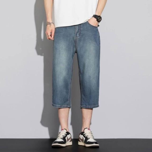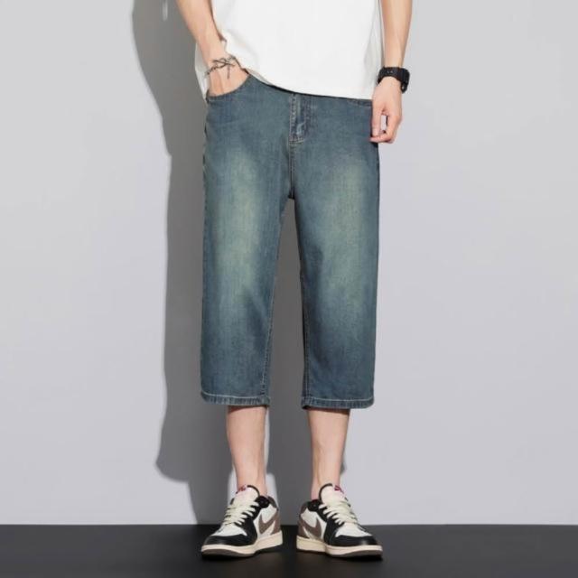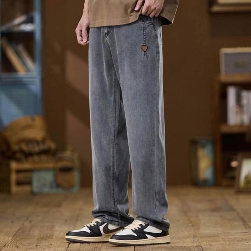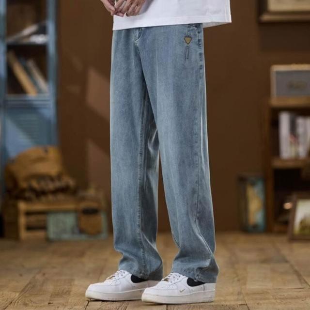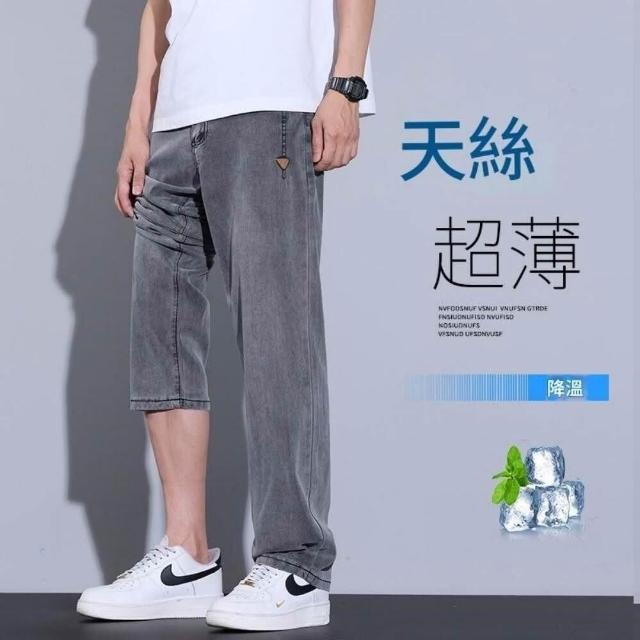 牛仔褲男夏季薄款透氣休閒褲寬鬆彈性大碼直筒褲夏天韓版灰色男生時尚百搭中腰長褲男士涼感寬褲天絲彈性下著冰絲超薄垂順牛仔短褲