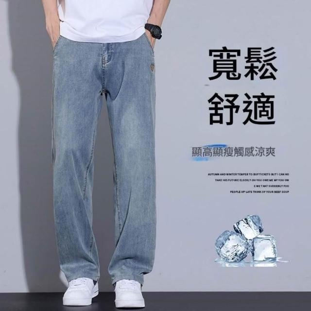 牛仔褲男夏季薄款透氣休閒褲寬鬆彈性大碼直筒褲夏天韓版灰色男生時尚百搭中腰長褲男士涼感寬褲天絲彈性下著冰絲超薄垂順牛仔短褲