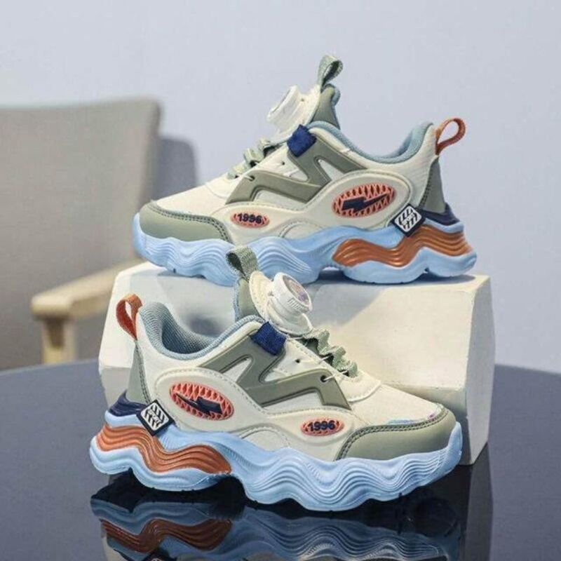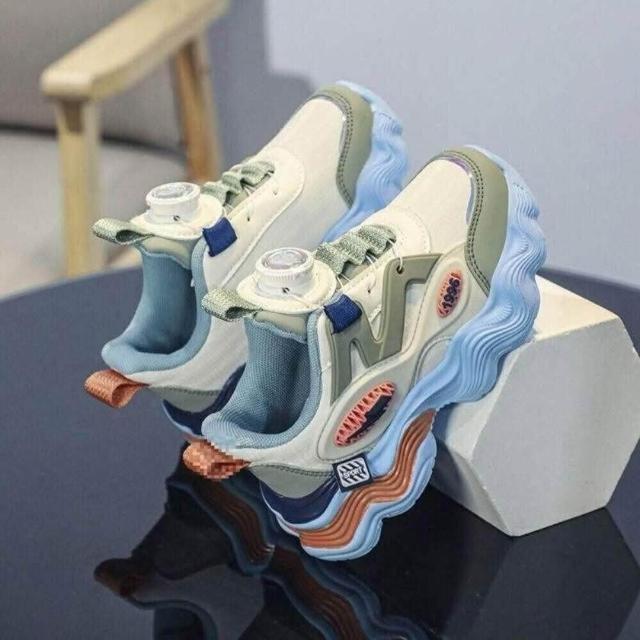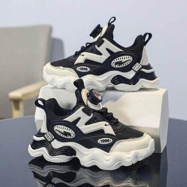 大尺碼運動鞋兒童四季小中大童輕便童鞋夏季新款老爹鞋潮流男童皮面慢跑鞋旋轉紐扣式懶人鞋透氣跑步鞋防水止滑耐磨籃球鞋健行鞋
