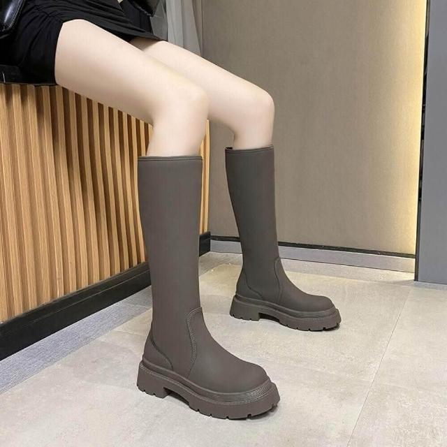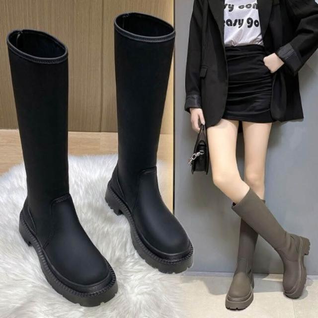 長筒靴粗跟長筒增高靴子女2025年新款不過膝長靴春高跟騎士靴厚底耐磨瘦瘦靴後拉鍊厚底馬丁靴增高彈力高筒靴防滑拉鍊長筒靴